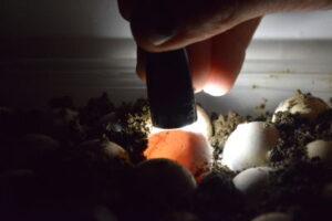 Unlike chicken or bird eggs, turtle eggs cannot be rotated. This will kill the developing turtle inside. Digging up a nest risks all the turtles within.